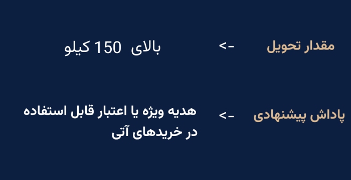 حجم و تناژ: هرچه مقدار بیشتر باشد، قیمت مناسبتری پیشنهاد میشود.